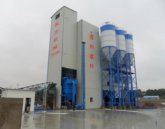 主要由提升輸送系統(tǒng)、計(jì)量配料系統(tǒng)、混合系統(tǒng)、儲(chǔ)料系統(tǒng)、包裝系統(tǒng)、除塵系統(tǒng)、控制系統(tǒng)、鋼架平臺(tái)等組成。